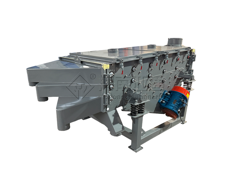 直线筛主要由筛箱、筛框、筛网、振动电机、电机台座、减振弹簧、支架等组成。